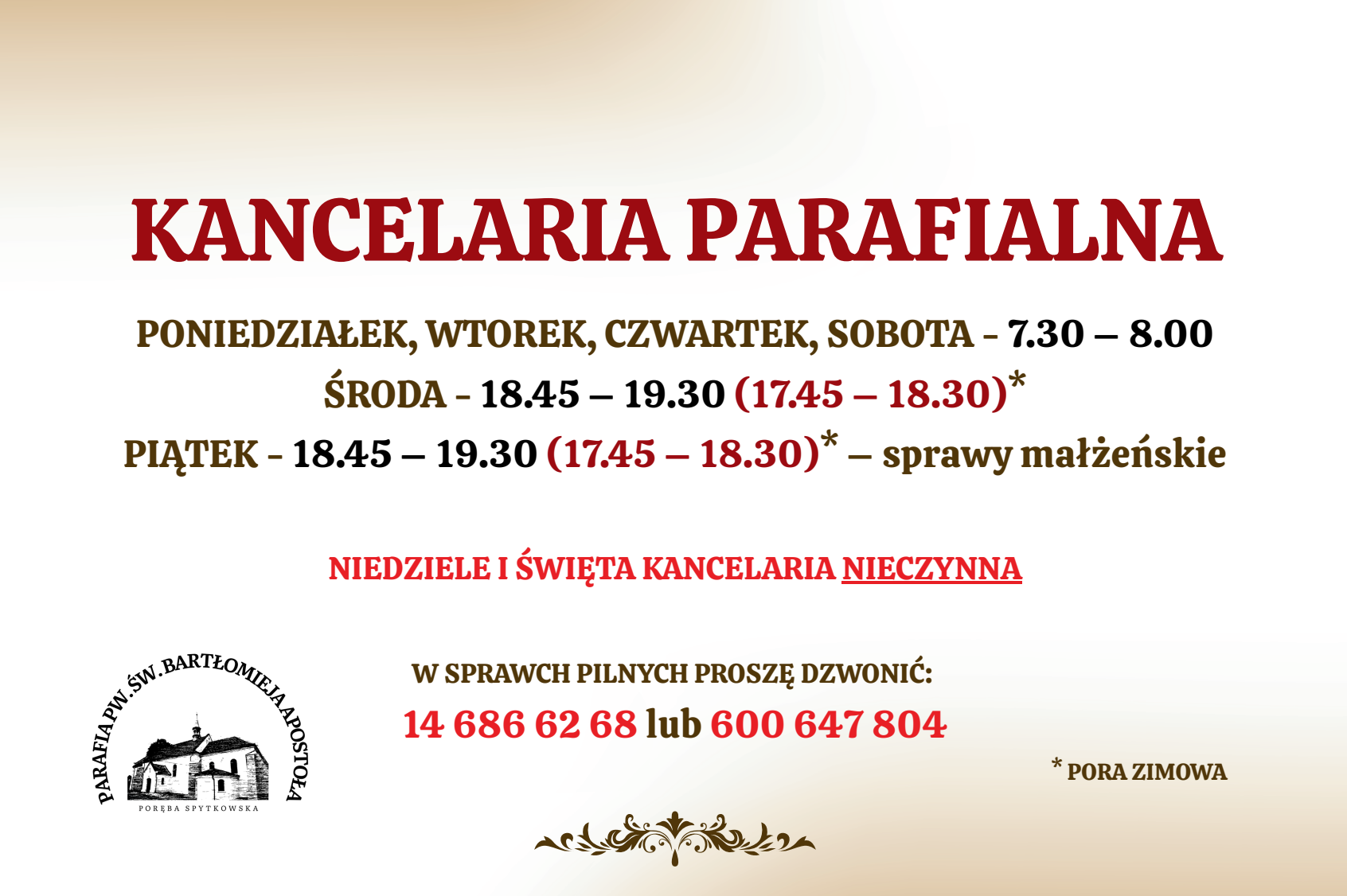 NIEDZIELE I ŚWIĘTA KANCELARIA NIECZYNNA